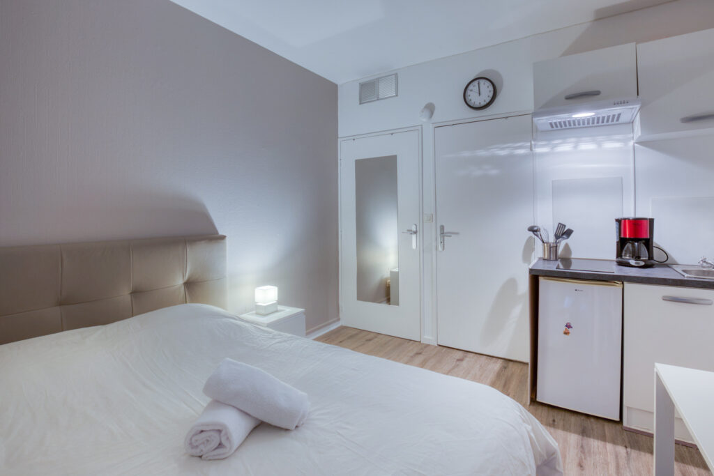 « Bonne adresse, centre ville de Magny le Hongre, studio propre et salle de bain très confortable avec la douche à l’italienne.